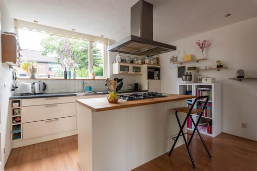 Op een werkelijk fantastische locatie aan het water in rustige kindvriendelijke woonomgeving gelegen ruime uitgebouwde tussenwoning met oprit/parkeerplaats, een garage/berging en diepe sfeervolle achtertuin met uitzicht op en grenzend aan het water. De directe omgeving kenmerkt zich door het vele groen, het Bad Vilbelpark en ligging op korte afstand van scholen, winkelcentra Oostermeent en Holleblok. Deze comfortabele woning is voorzien van een ruime uitgebouwde tuingerichte woonkamer met open haard en tuindeuren, open keuken voorzien van diverse inbouwapparatuur en een garage aan de voorzijde. De eerste verdieping is voorzien van een 3 slaapkamers, een separaat toilet, 2 badkamers en een bergruimte. Op de tweede verdieping een ruime slaapkamer met dakkapel en dakvenster en er is een bergruimte.