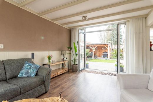 NS-station en rijksweg A1 liggen ook op korte afstand. De woning is voorzien van een ruime L-vormige woonkamer met tuindeuren, een nette half open keuken voorzien van diverse inbouwapparatuur en een doorloop naar de bijkeuken/berging met wasmachine-/drogeraansluiting en cv-ketel. De eerste verdieping is voorzien van 3 slaapkamers en een nette moderne badkamer De tweede verdieping is voorzien van een ruime dakopbouw en ingedeeld met een overloop en een (vierde) slaapkamer. Ook is er ruim voldoende bergruimte achter de knieschotten.